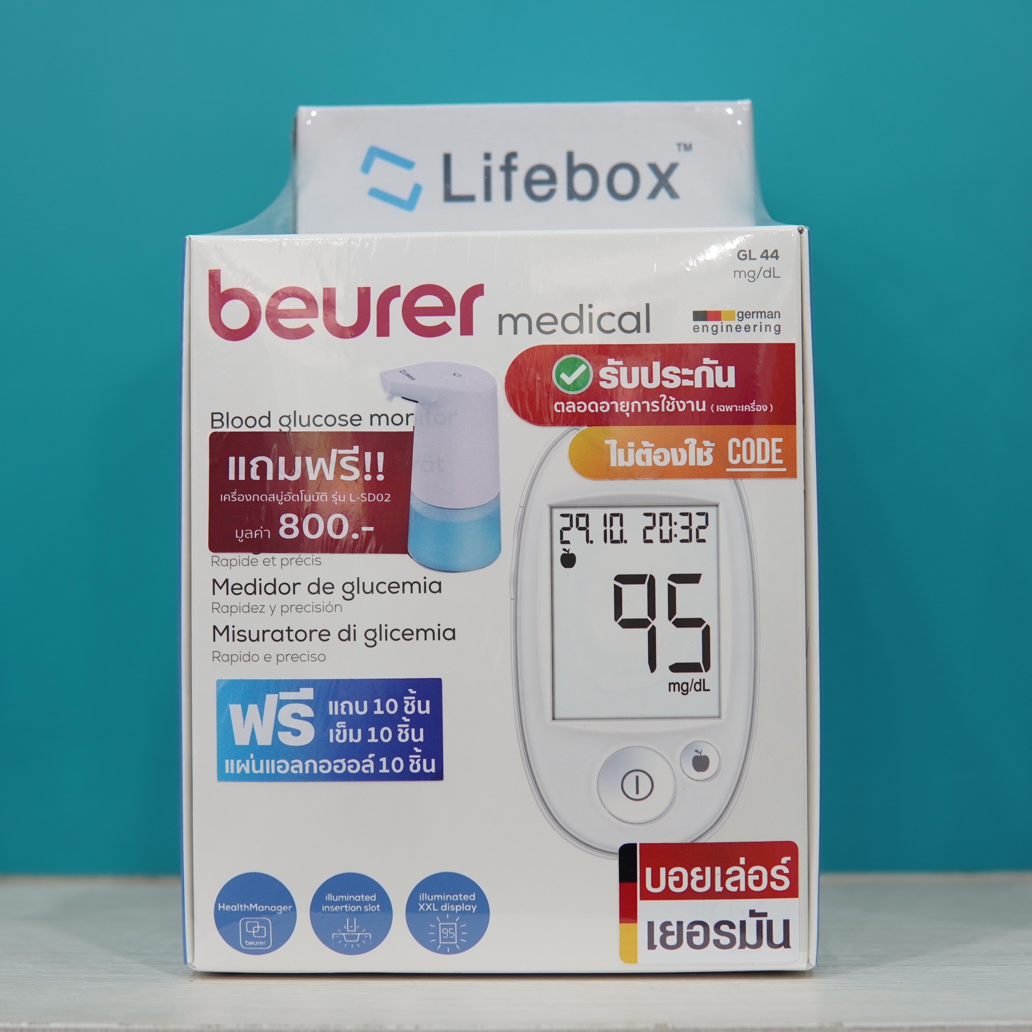 ชื่อสินค้าอังกฤษ: beurer blood glucose monitor GL 44 with automatic soap dispenser for free!